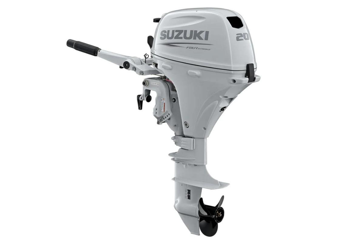 Suzuki DF20 ASW5: 2 Cylinder, SOHC 4-Valve, Electronic Fuel Injection with Lean Burn, 15 in. or 20 in. Shaft, Manual or Electric Start, Tiller Steering, 97108 lb. Dry Weight, Super Cool White. The Suzuki DF20 ASW5 delivers 20 HP of smooth, efficient power in a lightweight design thats perfect for fishing boats, inflatables, and small craft. Featuring advanced EFI technology, digital CDI ignition, and a 5-position tilt with shallow-water drive, this compact outboard provides easy starting, excellent fuel economy, and reliable performance every time.