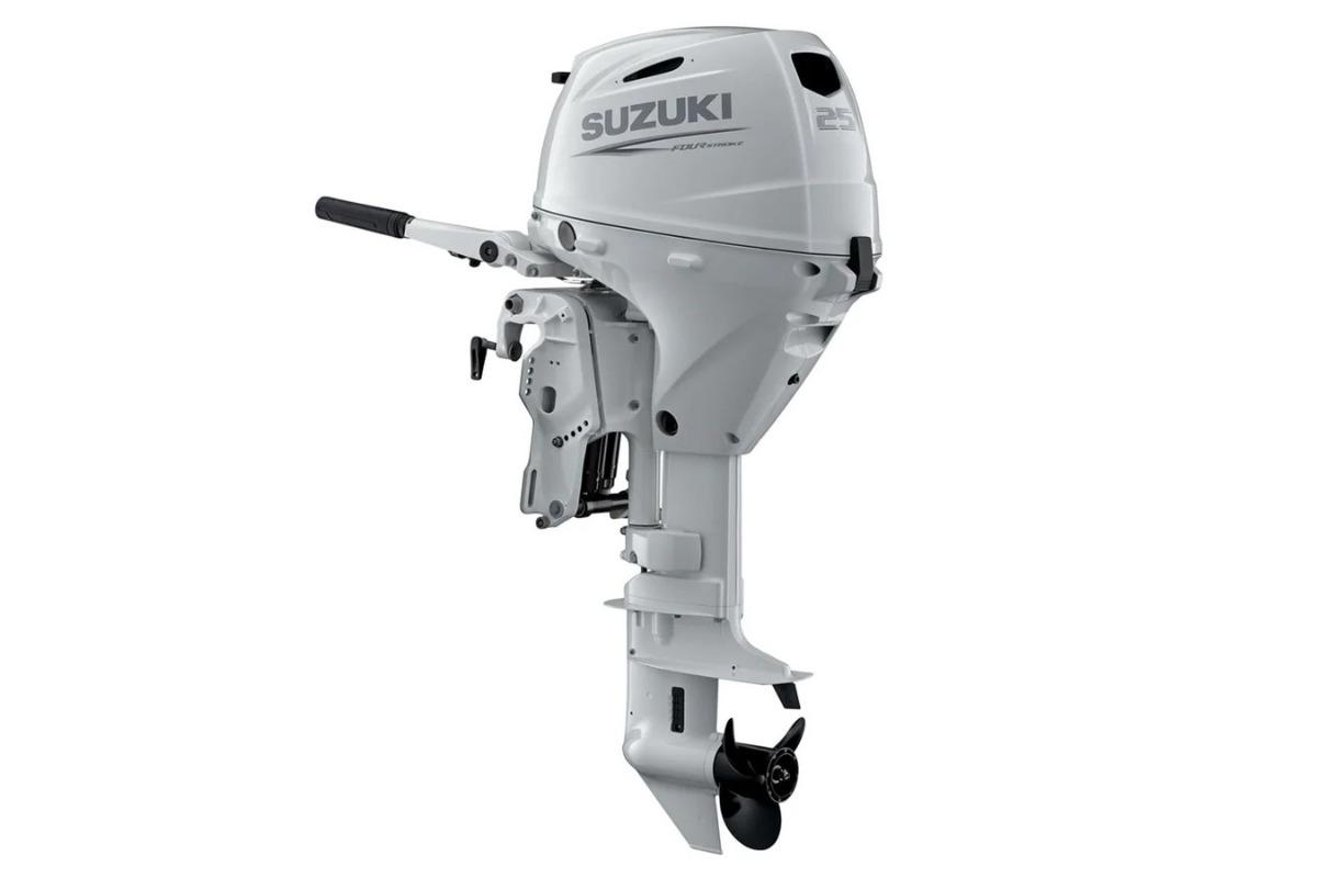 Suzuki DF25 ATHSW5: 3 Cylinder, SOHC 4-Valve, Suzuki Battery-less Electronic Fuel Injection with Lean Burn Control, 15 in. or 20 in. Shaft, Manual or Electric Start, Tiller or Remote Steering, 136163 lb. Dry Weight, Super Cool White. The Suzuki DF25 ATHSW5 delivers outstanding efficiency and performance in a compact, lightweight design. With advanced EFI technology and easy starting, it provides smooth, reliable power for fishing boats, pontoons, and inflatables