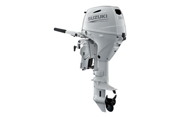 Brand New White 30HP Suzuki Tiller Control with 20″ Shaft with Fuel Tank and Prop