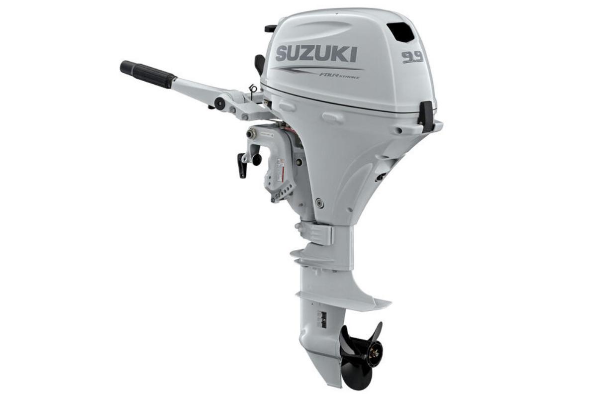 Suzuki DF9.9 BTHLW5: 2 Cylinder, SOHC 4-Valve, Electronic Fuel Injection with Lean Burn, 2025 in. Shaft, Electric Start, 108120 lb. Dry Weight, Super Cool White. This 9.9 HP engine delivers smooth, fuel-efficient performance with advanced digital CDI ignition and optional power tilt. Perfect for small boats, inflatables, and tenders needing reliable, lightweight power.