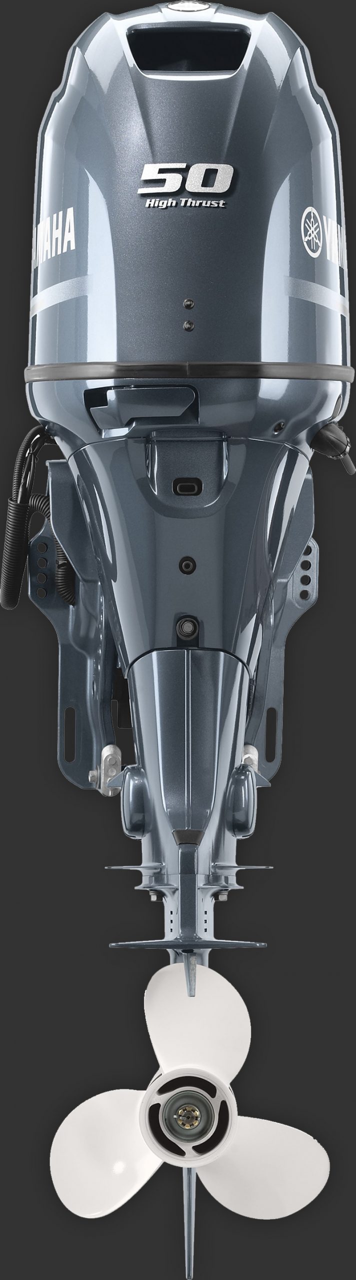 - Max Muscle: Yamaha High Thrust 50HP – 20″ can Increase thrust up to 60 percent in forward and 70 percent in reverse with a large-diameter, low-pitch Dual Thrust™ propeller. They’re optional on our High Thrust T50 and T60, and standard on our T25 and T9.9, and are perfect for sailboats and pontoons. They can also be used on Yamaha Midrange outboards with 4.25″ K gearcases.